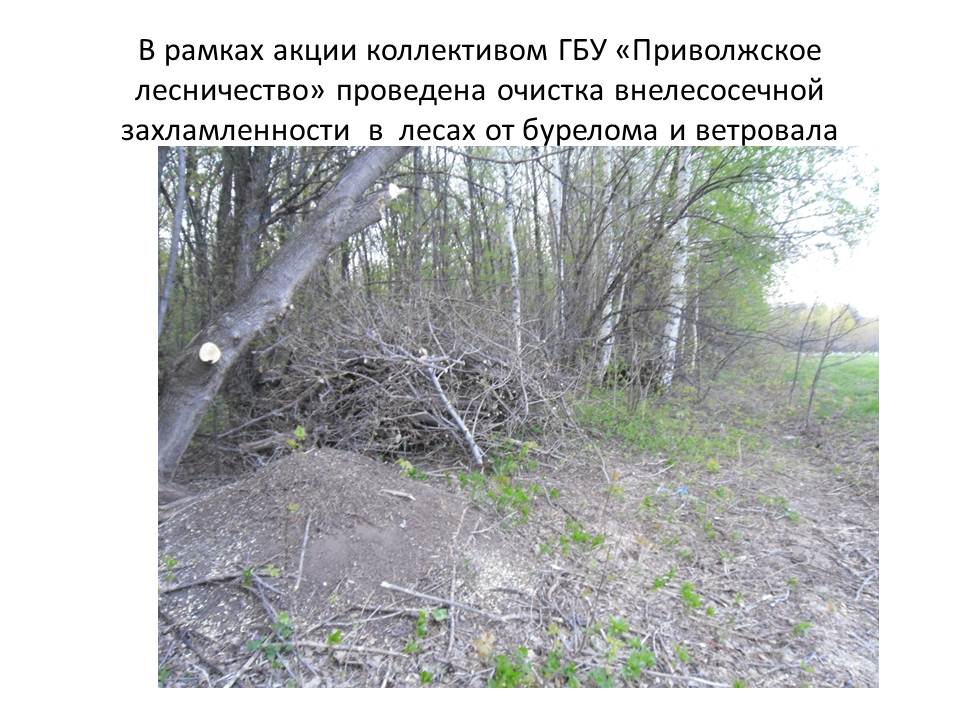 ГБУ «Приволжсклес» обеспечило всех желающих принять участие в акции посадочным материалом. В день проведения акции посадочный материал отпускался на безвозмездной основе.