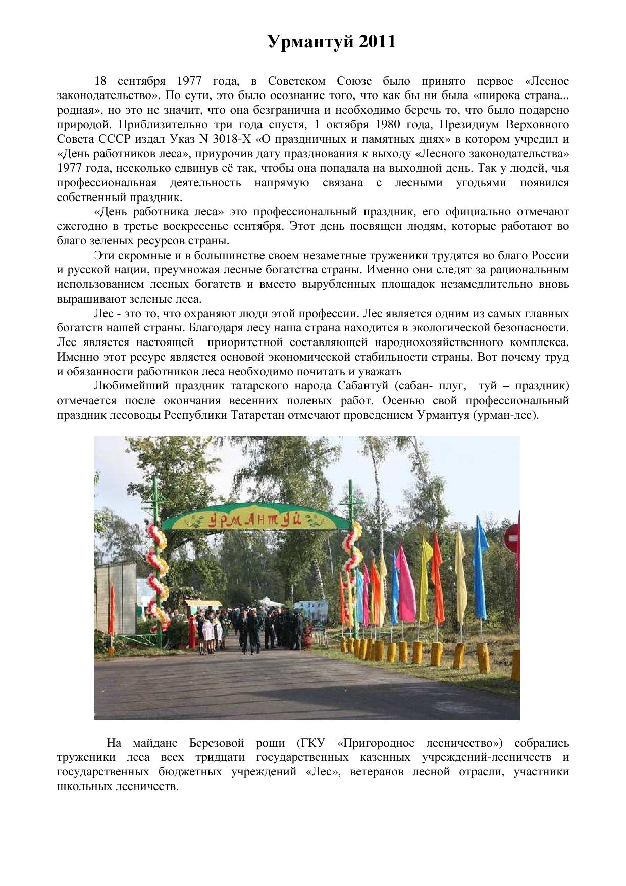 В соответствии с распоряжением Кабинета Министров РТ № 683-р от 2 мая 2012 года Министерство лесного хозяйства Республики Татарстан 6 октября 2012 года проводит традиционную природоохранную акцию «День посадки леса».