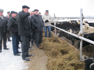 Практическая часть совещания началась на молочно-товарной ферме Агрофирмы «Заря» (с. Ямбулатово). Руководитель предприятия Насибуллин Р.Ю. подробно ознакомил с технологическим процессом производства молока в коровниках, где содержатся 400 голов коров, организовано сбалансированное кормление, царит чистота и порядок, на сегодняшний день надои составляют 3300 кг, что составляет 8,2 кг на 1 корову (на 1 кг больше, чем в 2011 году).