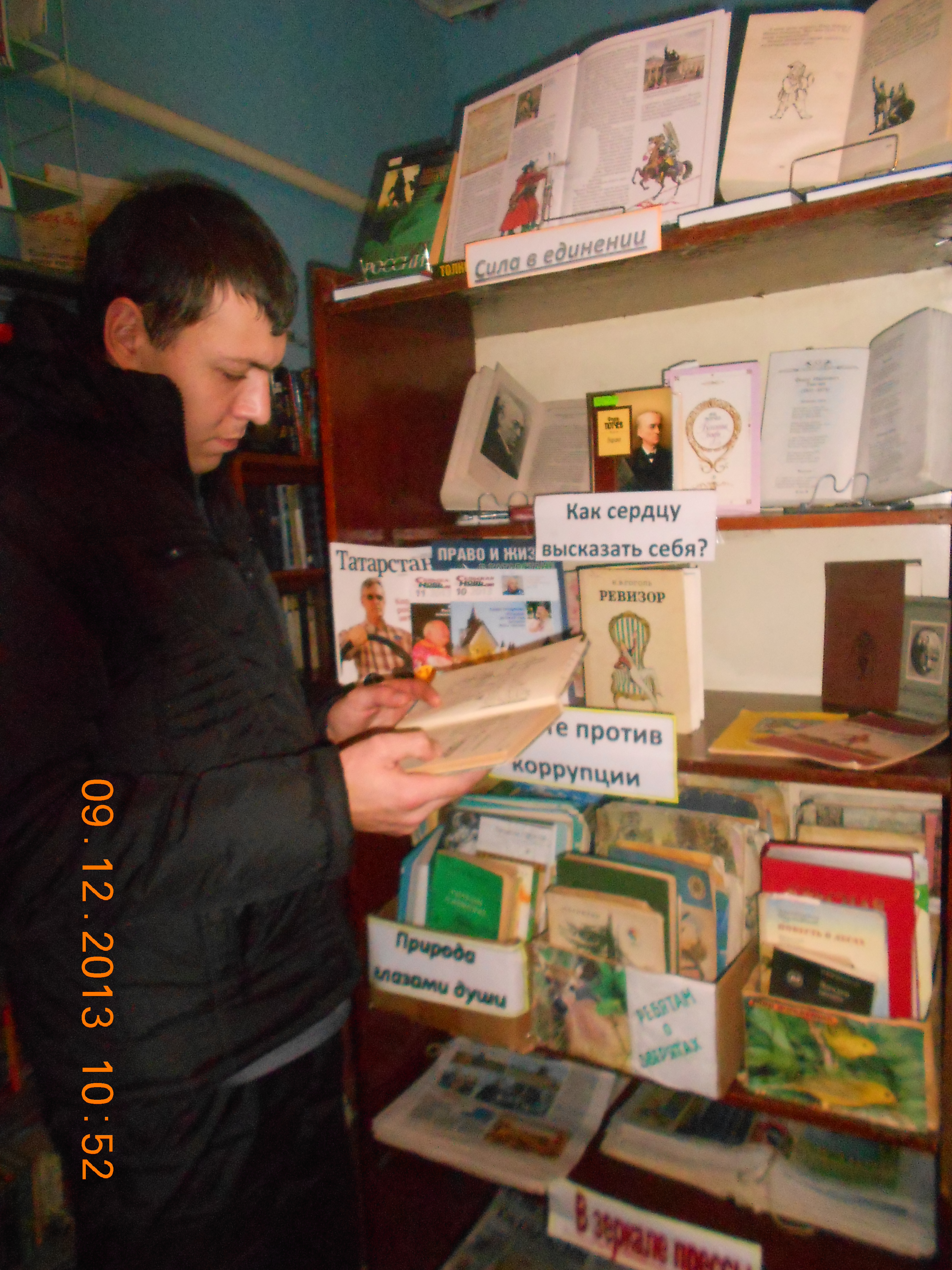 9 декабря - Международный день борьбы с коррупцией. В целях совершенствования государственной антикоррупционной политики, устранения причин и условий, порождающих коррупцию, а также реализации мер по противодействию криминализации экономики в Маматкозинской сельской библиотеке филиал № 21, заведующей библиотекой Еленой Седовой была организована выставка – призыв «Вместе против коррупции». Учитывая общегосударственную направленность на борьбу с коррупцией и антикоррупционную пропаганду, библиотека, как учреждение культуры, выполняющее не только просветительскую, но и воспитательную функции, не могла обойти стороной столь важную проблематику. На выставке представлена литература из разных отраслей знаний, посвященная этой злободневной теме современности. Цель мероприятия создать условия для углубления знаний о коррупции и антикоррупционном поведении, познакомить с видами коррупции в обществе.