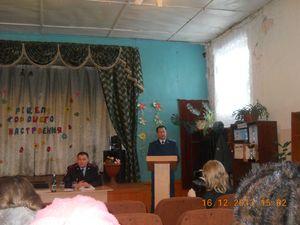 Далее начальник УУП и ПДН межмуниципального отдела МВД Российской Федерации «Верхнеуслонский» Данилов Марсель Марсович доложил о проделанной работе в 2013 году по профилактике терроризма и экстремизма. Начальник ОП ППС РТ с. Русское Макулово Плохов Виктор Геннадьевич рассказал о соблюдении требований пожарной безопасности в новогодние праздники.