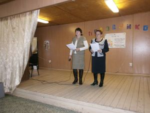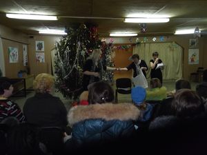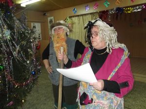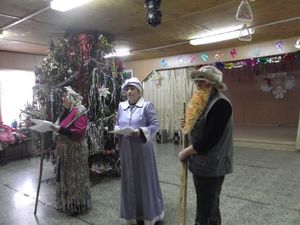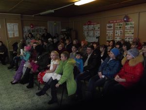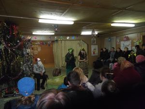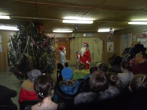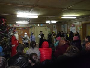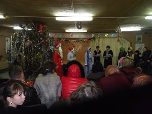 Ведущие новогоднего мероприятия Гущина Наталья и Кудрявцева Нина провели со зрителями занимательные новогодние конкурсы, игры, загадки. Разыграли новогоднюю лотерею. Водили хороводы возле праздничной елки, пели песни, танцевали. Все участники были поощрены подарками Деда Мороза.