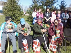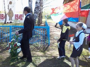 Председатель ветеранской организации Лидонова Л.И от имени старшего поколения, чьё детство прошло в суровые военные годы, поздравила сельчан с Днем Победы и пожелала свято чтить односельчан, чьи имена выбиты на гранитных плитах и где трепетно горит святое пламя Памяти. Были названы торжественно все имена солдат вернувшихся живыми в наше село.
