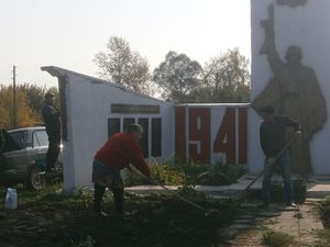 Произвести ремонт памятника павшим в ВОВ: произвести косметический ремонт памятника.