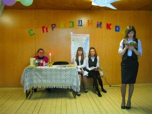 Ведущие праздника Лидонова Любовь, Гущина Наталья, Кудрявцева Нина рассказали о Рождественских праздниках, об истории Рождества, потом провели интересные конкурсы между 2 командами «Снеговики» и «Звездочки