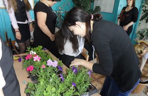 В конце урока ребятам было предложено высадить цветы для украшения нашей школы.