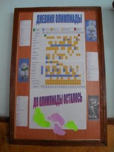 XXII Олимпийские зимние игры, к которым мы готовились долгих 7 лет, проходят в эти февральские дни в российском городе Сочи. И, наверное, сейчас нет ни одного равнодушного человека, который не болел бы за олимпийцев. Все жители примкнули к экранам телевизоров и наблюдают за соревнованиями в различных видах спорта. Наши учащиеся и педагогический коллектив не исключение. С утра начинается бурное обсуждение заработанных российскими спортсменами медалей, общекомандного рейтинга, а также разбор неудачных выступлений. Помогает оставаться всем желающим в курсе данных событий Олимпийский дневник, который ведет ученица... . Она каждый день оформляет стенд Олимпиады, где отражены все перемены, произошедшие в рейтинге стран-команд . Равнодушных нет, никто не проходит мимо, все с огромным интересом останавливаются, смотрят и радуются очередным победам российских олимпийцев.
