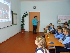 В МБОУ «Набережно-Морквашская СОШ» заведующая Набережно-Морквашской сельской библиотекой с учениками 1-4 классов совместно с учителями начальных классов Исмагиловой В.Г. и Григорьевой Г.А. и завучем по воспитательной части Кирилловой Н.Л. провела классный час с презентацией «Слово, творящее мир».