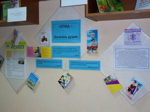 «СПИД – болезнь души!» Так ли это? Ответу на это утверждение и этот вопрос был посвящена беседа с подростками и молодежью, организованная ко Всемирному дню борьбы со СПИДом. Основная мысль мероприятия сквозила в каждом слове, сказанном в этом разговоре, и оказалась понятна каждому ее участнику. Перед лицом вечности, перед лицом этой страшной болезни наша жизнь, наша душа - хрупки и нежны, словно лепестки цветков, которые легко обжечь и жаром, и холодом. Заражаются по-разному, умирают – одинаково. Лучший спаситель от СПИДа - голова на плечах. В целях профилактической работы предложены буклеты для молодых людей, которые находятся на выставке-иллюстрации «СПИД – болезнь души»