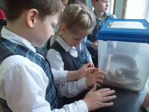 Сегодня к нам в школу приезжал мини зоопарк. Его руководитель - Елена Владимировна рассказала учащимся о повадках животных, чем питаются, где проживают, откуда родом. Большой интерес вызвала обезьяна Гриша, которая просто общалась с детьми и радовалась приезду в школу. С особым интересом ребята рассматривали: черепаху, степного варана, морскую свинку, маленького питона и других.