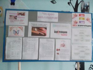 В рамках месячника по борьбе c коррупцией в школе был размещен информационный стенд по антикоррупционной деятельности, с набором инструктивно-методических писем по обеспечению соблюдения действующего законодательства .