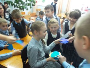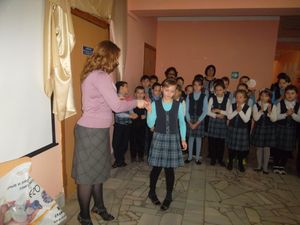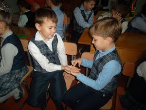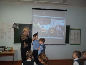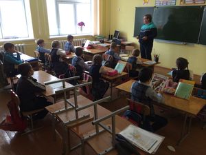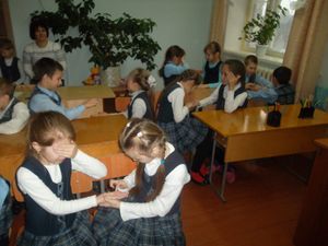 На уроке в 1-4 классах под руководством заместителя директора по воспитательной работе Кирилловой Надежды, обучающиеся пытались ответить на вопросы «Слепоглухие: кто они такие? Как они ориентируются? Как им помочь?» Особенно ребятам понравилась практическая часть уроков. Кроме того, ученики увидели документальный фильм режиссера Юрия Малюгина «Слово на ладони», который повествует о судьбе слепоглухих людей.