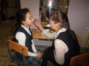 На переменах звучали новогодние песни, что создавало праздничное настроение. Ребята, учителя, работники школы и родители приобретали новогодние подделки, блестящие, разной конфигурации, снеговики и многое другое. Девочки 9 класса украшали лица учащихся аквагримом и плели косички. Но самой интересной для всех была сладкая выпечка на любой вкус: торты, пирожное, блины с разными начинками и разные вкусности.