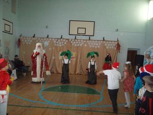 В 12 часов в нашей школе у учеников начальных классов проходил новогодний утренник. По традиции к нам в гости приехали из г. Казани: лучший в Татарстане Дед Мороз и Снегурочка вместе с Эльфом. На празднике было много танцев, всем было весело, было много сюрпризов и подарков. Повеселились на славу и взрослые и дети.