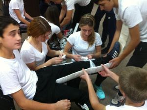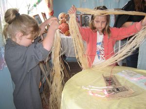 Затем, разбившись на пары, на ладошках писали слова. Один пишет, а другой отгадывает слово.
