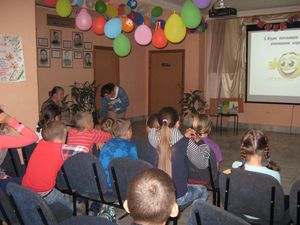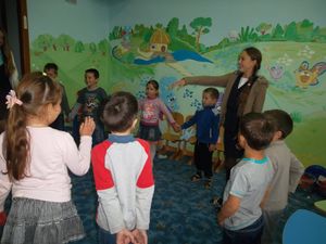 Была проведена дидактическая игра "Будь внимателен!". В этой игре участники должны были топать ногами, если слышали название не только птиц. Также слушали стихотворение-задачу, после которого назвали всех птиц, которые встретились в тексте. Маленькие гости отгадывали загадки, разгадками которых были зимующие у нас птицы. Мудрый филин прочёл сказку "Синица зимой".