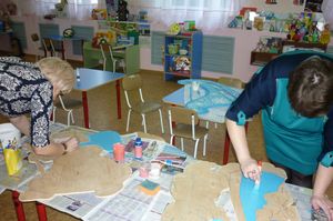 Сотрудники вместе с воспитанниками готовятся к празднику, встрече Нового года. Они разучивают песни, пляски, украшают детский сад, а также, сами мастерят различные праздничные декорации.