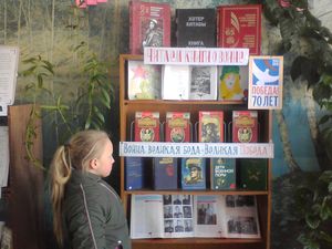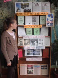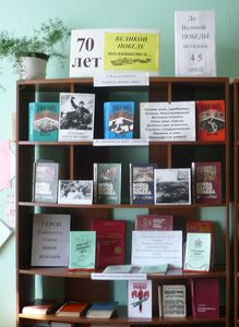 Тема 70-летия Победы в Великой Отечественной войне в преддверии праздника является одной из главных тем в работе Верхнеуслонской Центральной библиотеки. В читальном зале начала свою работу книжная выставка под названием «Войны священные страницы», которая рассказывает читателю о том, какой неоценимый вклад внес Татарстан в завоевание победы над германским фашизмом в годы Великой Отечественной войны.