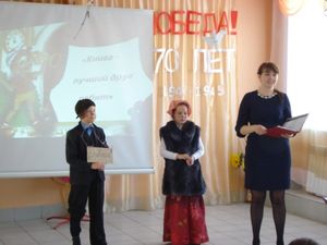 Работник культуры, в свою очередь, поздравила с окончанием учебного года, пожелала учителю здоровья, трудовых успехов в нелегком педагогическом труде. А Артуру пожелала удачно отдохнуть летом, набраться новых сил для следующего учебного года.