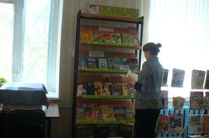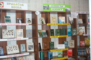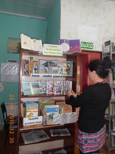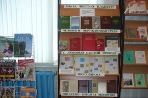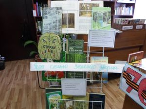 Там же представлены книги русских писателей о лесе М. Пришвина, В. Бианки, К. Паустовского, Д. Мамина- Сибиряка, Н. Сладкова, Г. Скребицкого.