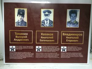 В Набережно-Морквашском СДК оформлен стенд к 70-летию Победы людям, Героям, которые отдали жизнь за эту Победу, в которых разместили биографию героев Верхнеуслонского района и их фотографии. Один из этих героев Токанин Валерий Андреевич. Родился 22.06.65 в Татарстане, Верхнеуслонский р-он, д.Печищи, Учащийся СПТУ-35. г.Казань. Мобилизован Верхнеуслонским РВК 26.06.83. В ДРА с 14.11.84.