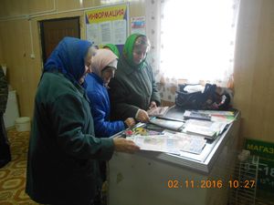 7 декабря заведующая Маматкозинской сельской библиотекой Елена Седова посетила деревню Татарское Маматкозино, которая находиться в трех километрах от библиотеки. Читатели жду библиотекаря в первую и последнюю среду месяца в магазине, где меняют книги и периодические издания, Елена знакомит своих читателей с текущими новостями района и республики, проводит обзоры поступающей в библиотеку прессы, принимает заказы на следующее посещение.