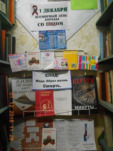 1 декабря в Маматкозинской сельской библиотеке библиотекарь Елена Седова оформила выставку «СПИД: Мода. Образ жизни. Смерть», посвященная Всемирному дню борьбы со СПИДом.