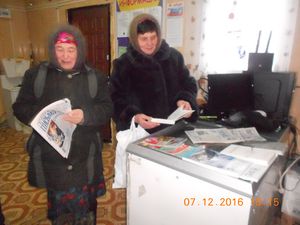 К декаде инвалидов в рамках акции «С открытым сердцем, с добрым словом» библиотекарь Елена Седова посетила семью Федоровых – пожилая семья, оба инвалиды второй группы, зимой им трудно добираться до библиотеке, потому библиотекарь приносит им литературу на дом, в основном это переодические издания «Лечебные письма» и «Приусадебное хозяйство», нравиться им полистать и газету «Сам хозяин».
