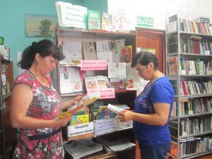 Также библиотекарь посещает тех, кто проживат и достаточно далеко от библиотеки, к ним библиотекарь приходит сама, приносит почитать любимую литературу и переодику.