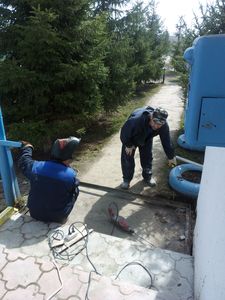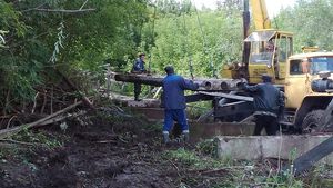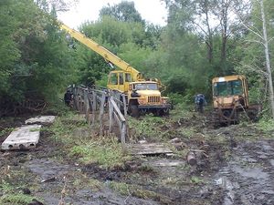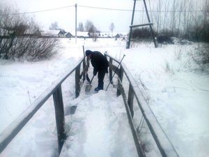 Продолжается заливка катка около пешеходного моста между д.Крестниково – с.Ямбулатово.