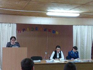 На встрече шел разговор о проблеме коррупции и методов ее предупреждения. В течении всей встречи ведущие пытались донести до школьников мысль, что «Коррупция – это плохо» и ее можно победить лишь, если взяться всем вместе. И всегда нужно быть честным и не нарушать законы.