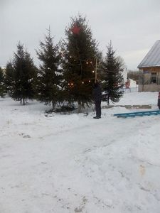 Все организации принимают активное участие в оформлении своих помещений и зданий. Сегодня сотрудниками Исполкома и культуры была украшена елка около Ямбулатовского СДК.