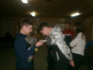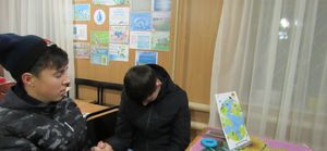 В России начало года 1 января введено первым российским императором Петром 1 в 1699году. Затем провели конкурс « Есть идея». Организовали две команды: команда «Елки» и команда «Игрушки. Провели конкурс «Сочини синквейн», «Прыжок в Новый год», «Подарочек», игра-викторина – «Как его зовут?», В заключении с детьми провели интеллектуальный бой. Победила команда девочек «Елки». Все участники мероприятия получили новогодние призы.