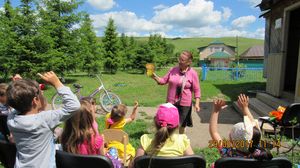 Библиотекарь и работники культуры Наталья Гущина и худрук Нина Кудрявцева организовали и провели урок здоровья «Советы доктора АПЧХИ» в Ямбулатовском детском саде «Солнышко»