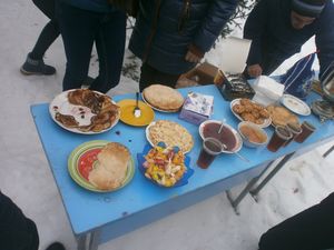 Сотрудники Ямбулатовкого сельского Дома культуры и сельской библиотеки вместе подростками по традиции приступили к лепке снежных фигур. В этот день возле СДК у самой пушистой елочки украшенной новогодними гирляндами расположились снежные фигуры главных героев Нового года — Деда Мороза, Снегурочки, снеговиков, Бабы Яги, Лешего, а также символа наступающего года - Собаки.