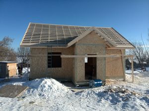 Зима. На улице устойчивая холодная погода. Однако, силами района, уже ведется строительство некоторых объектов. Так, сделав задел осенью, подрядной организацией в 2016 году были выполнены работы по устройству фундамента для строительства панельного дома, планируемого для заселения фельдшера села Матюшино. Уже в текущем году, на своей базе, организация выполнила сбор СИП-панелей и, выехав на место, оперативно начала их устанавливать. Уже сегодня на пустыре возведено здание, у которого имеются стены и крыши.