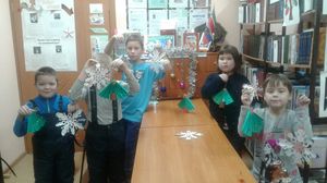 Лилия Садеева предложила ребятам изготовить новогоднюю игрушку своими руками. Поле долгих стараний, у детей получились замечательные елочки и снежинки «Снеговики». Во время творчества ребята читали стихи, пели, отгадывали загадки о зиме, вспомнили пословицы и поговорки о труде.