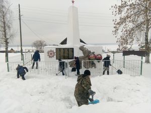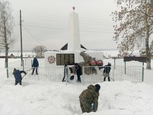 1 февраля, в рамках гражданско-патриотического месячника, учащиеся 3-11 классов МБОУ «Матюшинская СОШ» расчистили от снега территорию Памятника героям-землякам, погибшим в боях и защищавшим Родину в годы Великой Отечественной войны 1941-1945 г.г., в д.Матюшино.