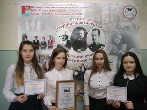 20 февраля учащиеся МБОУ «Матюшинская СОШ» стали участниками II открытой зональной научно-практической конференции учащихся школ муниципальных районов Республики Татарстан «Васильевские чтения». Конференция прошла в рамках мероприятий, посвящённых увековечиванию памяти учёных Васильевых. Учащиеся 10 класса представили свои работы в трёх тематических направлениях: Гайфуллина Айсылу – краеведение, Арсланова Фарида и Павлова Светлана - секция естественно - научных дисциплин, Гадельшина Яна – филология. Работы соответствовали целям и задачам конференции, девочки постарались доступно и полно раскрыть темы выступлений, эффективно и грамотно использовали иллюстративные средства. За активное участие в работе конференции и хорошее выступление Гайфуллина Айсылу, Павлова Светлана и Арсланова Фарида получили сертификаты участников, а Гадельшина Яна – грамоту за 2 место на II открытой зональной научно-практической конференции.