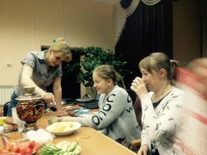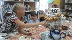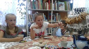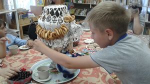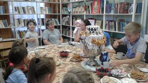 Художественный руководитель Наталья Махнина рассказала ребятам об одном из самых старинных и добрых обычаев на Руси – чаепитии, перенеся детей в те далекие времена, когда в старинной русской избе под шумок самовара велись душевные разговоры, да распивался ароматный чай!