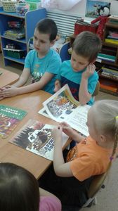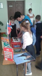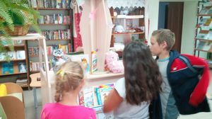 В завершение мероприятия Мадиня Вагизовна предложила детям обзор книжной выставки новых книг «Здравствуйте. А мы новенькие», среди которых были новые сказки Андерсена Г.Х., рассказы К. Булычева и другие не менее интересные издания.
