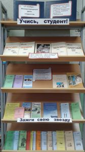 Выставка посвящена истории кино. Читатели также смогут узнать историю создания первых фильмов, переход от немого к звуковому, от черно-белого до цветного. Здесь же представлены лучшие экранизированные книги 20-го столетия. По этим книгам созданы не просто фильмы, а целые сериалы.