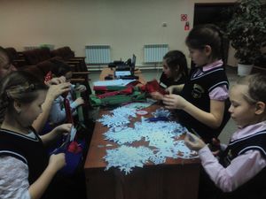 Работники Дома культуры создали праздничную атмосферу, познакомили ребят с различными технологиями изготовления новогодних поделок. У Деда Мороза в мастерской всегда полно красок, цветной бумаги, разной мишуры, пахнет клеем и много всяких других нужностей. А главное там царит дух праздника и волшебства, потому что создается нечто новое. Ребята своими руками делают новогодние поделки.