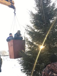 В сельском поселении кипит работа по подготовке к открытию Новогодней ёлки, которая находится на детской спортивно-игровой площадки. Подготовлены тантамарески (стенд для фотосъёмки с отверстием для лица), повешен новогодний баннер.