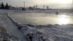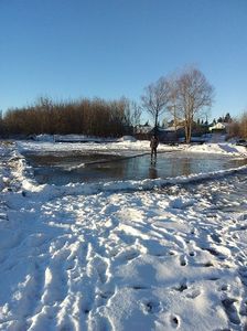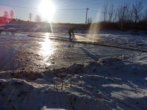 Продолжается заливка катка около пешеходного моста между д.Крестниково – с.Ямбулатово