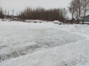 Продолжается заливка катка около пешеходного моста между д.Крестниково – с.Ямбулатово. На сегодняшний день залили третий слой.