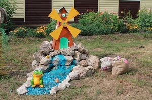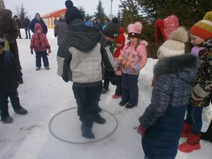 В этом году на территории детского сада появился настоящий снежный городок. В котором есть все необходимое для организации двигательной активности детей дошкольного возраста: ледяная горка, лабиринт, черепаха – тренажер для кидания мячей, змея-тренажер для ловкости и координации движений. В городке расположились знакомые персонажи любимых сказок и мультфильмов.