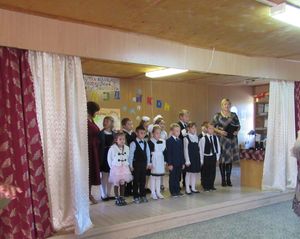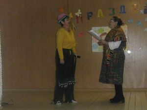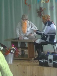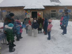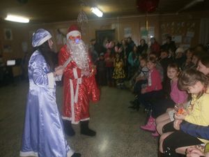 После праздничного поздравления директора школы Гаврилина А.Н., главы Ямбулатовского сельского поселения Ахметзянова М.Н., ребята окунулись в сказочный мир, где их встретили Снегурочка с Дедом Морозом, Баба-Яга с дочкой Ягусей, Леший, роль, которых прекрасно исполнили Анохина Т.В., Коновалова Н.А, Кашапова Р.Н., Анохина Анастасия, Укадерова Анна, Болотова Рада.