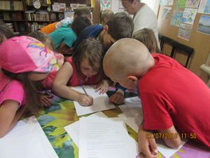 Далее ребята ответили на вопросы «Биографической» викторины. Поиграли в игру «Отгадай – ка» и поучаствовали в конкурсах «Детективы» и «Шифровка», где нужно было вспомнить произведение по описанию. Разгадывали кроссворд, чтобы узнать о любимом литературном жанре писателя, выбирали из предложенных пословиц, ту, которая больше всех подходила по описанию к рассказу. Все дети в конце мероприятия за активное участие получили небольшие призы. Лучшими знатоками жизни и творчества Л.Н. Толстого были признаны сестры Макаровы: Аделина и Маша. Так же была оформлена книжная выставка « Великий романтист» и библиотекарь провела обзор этой выставки.