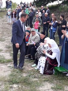 муниципального района Марат Галимзянович Зиатдинов , начальник отдела социальной защиты Министерства труда, занятости и социальной защиты РТ в Верхнеуслонском районе Ирина Алеева, Глава сельского поселения Владимир Никитушкин, Юбиляру передали персональное поздравление Президента РФ В.В. Путина,